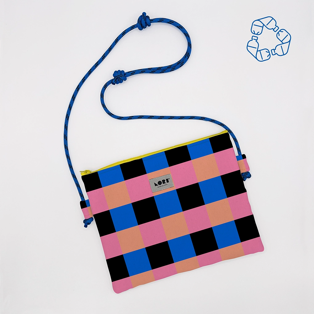 Confeccionado con tejido 100% reciclado de botellas de plástico PET, este bolso combina sostenibilidad, funcionalidad y un diseño vibrante que refleja la esencia de LORI BARCELONA®: color, energía y optimismo.